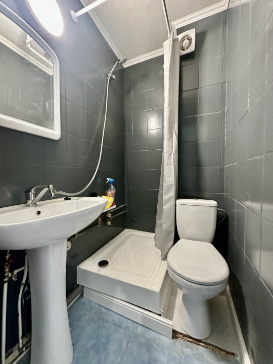 Garsoniera are o suprafață utilă de 11 mp și se vinde la cheie, fiind pregătită pentru locuire imediată sau pentru investiție în regim de închiriere. Dispune de geam termopan nou, mobilier (pat și dulap), chicinetă dotată cu chiuvetă și corp de bucătărie, precum și o baie complet renovată, echipată cu obiecte sanitare noi, cădiță de duș, chiuvetă și toaletă.